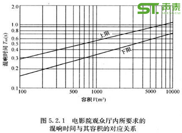 電影院要求短混響和平直混響時(shí)間特性頻率特性。因此電影院的容積越大,所需要的吸聲材料越多,從而加大了投資。一般而言,我們建議電影院每座容積在3.5——5.5m³/每座。所以實(shí)際中在滿足其使用條件的情況下盡可能取小容積。